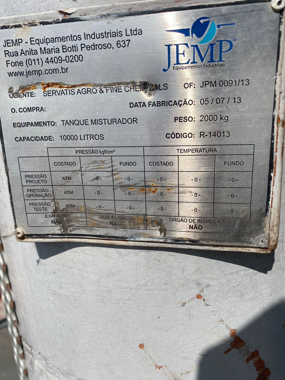Capacidade: 6500 LITROS E 10000 LITROS